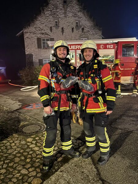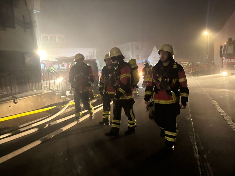Die Löschmaßnahmen zeigten sich insgesamt, durch die verwinkelte Lage des Gebäudes in der Ortsmitte, recht schwierig und aufgrund des verbauten Dämmmaterials zwischen den Dachsparren als langwierig. Erschwerend kam noch hinzu, dass ein Teil der Decke im Obergeschoss als akut einsturzgefährdet eingestuft werden musste. Gegen neun Uhr fand dann auch ein Teileinsturz der Decke statt, weswegen ab diesem Zeitpunkt kein Innenangriff mehr möglich war. Glücklicherweise konnte die verstorbene Person, welche sich noch im Gebäude befand, zuvor durch Kräfte des Brandbekämpfungszugs geborgen und einem Bestatter übergeben werden.