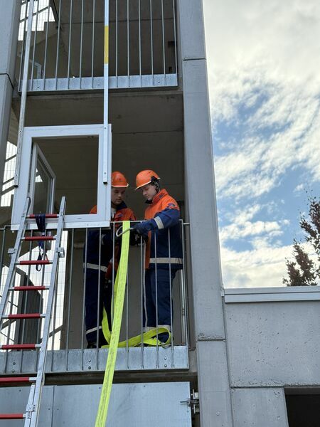 Zuvor haben die Jugendlichen in mit Übungsrauch verrauchten Räumen auf Zeit Gegenstände gesucht.