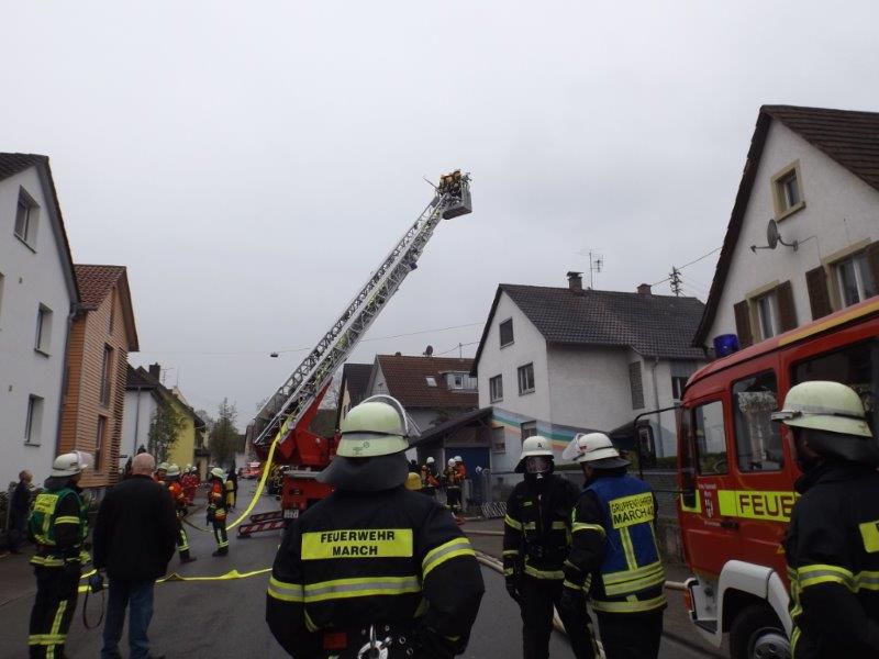 Die Wohnungen im Erd- und Obergeschoss blieben nahezu unversehrt und sind weiterhin bewohnbar, die Brandraumwohnung brannte teilweise aus und wird daher längere Zeit nicht bewohnbar sein (im Artikel der Badischen Zeitung ist dies leider falsch abgedruckt). Personen wurden nicht verletzt. Das Gebäude bleibt auch nach dem Feuerwehreinsatz komplett stromlos, da sämtliche Leitungen im Dach geschmolzen waren. Kurz vor Einsatzende wurden diese geschmolzenen Leitungen noch vom angerückten Energieversorger in Augenschein genommen. Der Sachschaden wird auf ca. 80.000 bis 100.000 Euro beziffert. Die Brandursache ging von der Küche aus, der Grund ist bisher noch nicht bekannt. Die Feuerwehren waren mit 43 Kräften und acht Fahrzeugen vor Ort; der Rettungsdienst mit Notarzt und DRK Ortsverein March mit 11 Kräften, die Polizeien (Schutz- und Kriminalpolizei) mit ebenso ca. 10 Kräften. Der Stv. Kreisbrandmeister Weber aus Breisach, sowie Marchs Bürgermeister Hügele machten sich vor Ort ein Bild der Lage.