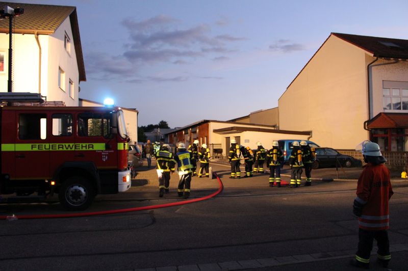 Da die Feuerwehr March in Neuershausen gerade eine Objekteinsatzübung absolvierte, mussten die Besatzungen zunächst eiligst die Ausrüstungen zusammenpacken und schließlich zum Einsatz abrücken. Die Einsatz-Lage auf Sicht ergab, dass aus einem, von insgesamt vier aneinander gebauten Lagerschuppen, grauer bis dunkelgrauer Rauch herausquoll, noch ohne Flammenerscheinung. Umgehend wurden zwei Löschfahrzeuge in Stellung gebracht und mit zwei Atemschutztrupps sowie zwei Rohren dem Schmor-Brand zu Leibe gerückt. Die Bötzinger Drehleiter war ebenso an der Einsatzstelle, musste aber nicht mehr in Stellung gehen. Personen waren in dem Lagerschuppen, der von einer Firma für Fahrzeugtechnik genutzt wird, keine mehr.